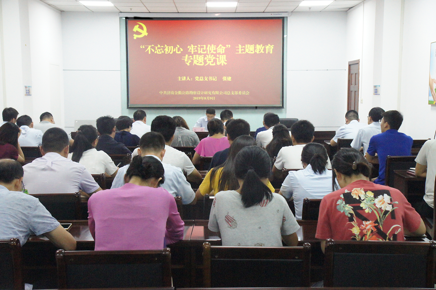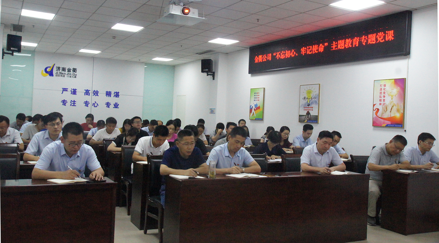 為深入推進“不忘初心 牢記使命”主題教育,不斷加強黨員干部教育管理,8月9日,濟南金衢公司黨支部開展主題教育專題黨課活動,全體黨員、中層以上管理干部、入黨積極分子。公司黨總支書記張建以“新常態(tài)下如何立足崗位以實踐行動詮釋實干、擔(dān)當(dāng)”為題,為全體參加人員上了一堂內(nèi)涵豐富、意義深遠的黨課。