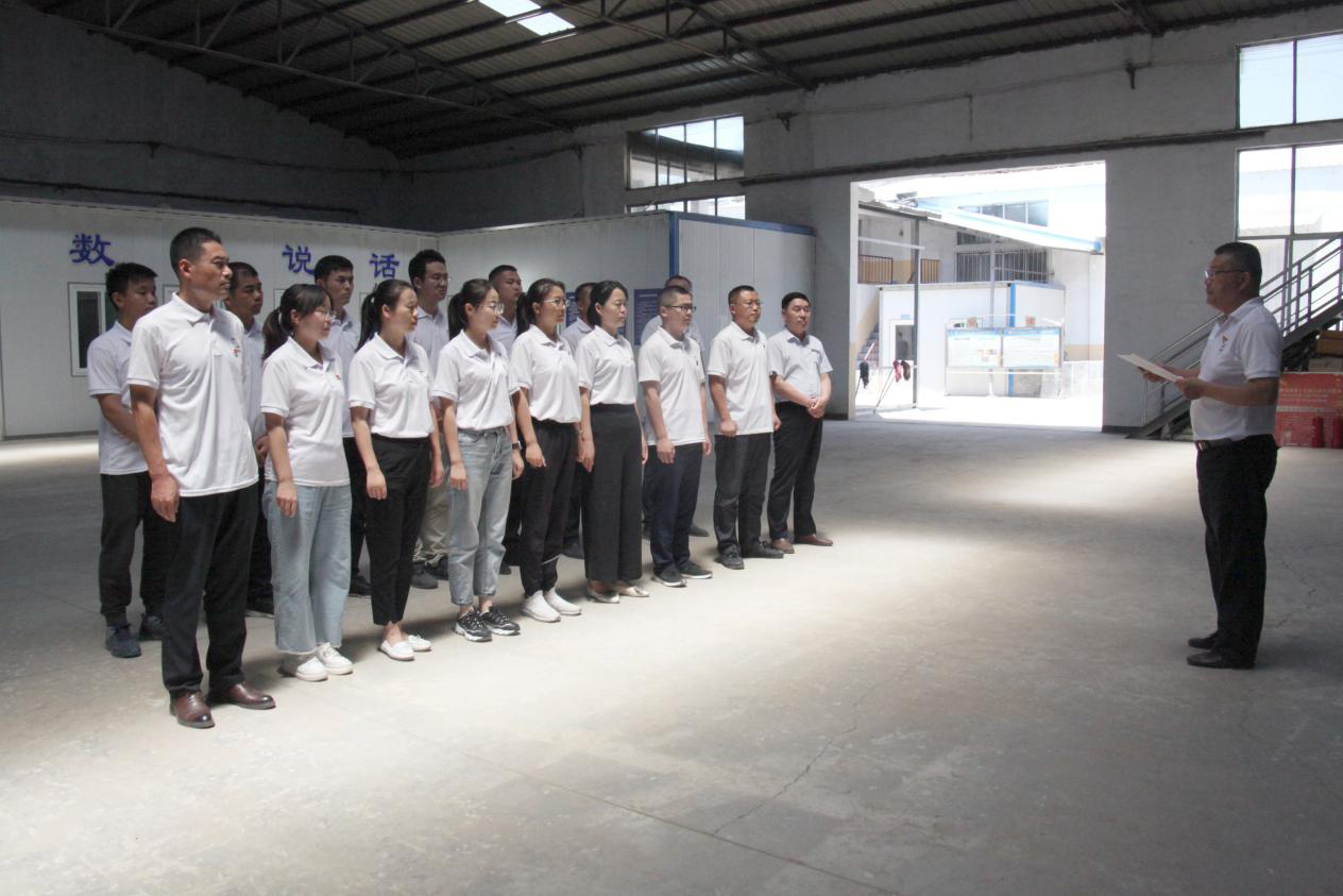 啟動儀式結(jié)束后,黨支部舉行“慶七一”主題黨日活動,為黨支部支部宋海濤、劉相革和范婷婷三名黨員同志過了政治生日,重溫了入黨誓詞,支部副書記韓作新就《習(xí)近平新時(shí)代中國特色社會主義思想學(xué)習(xí)綱要》作了專題黨課。