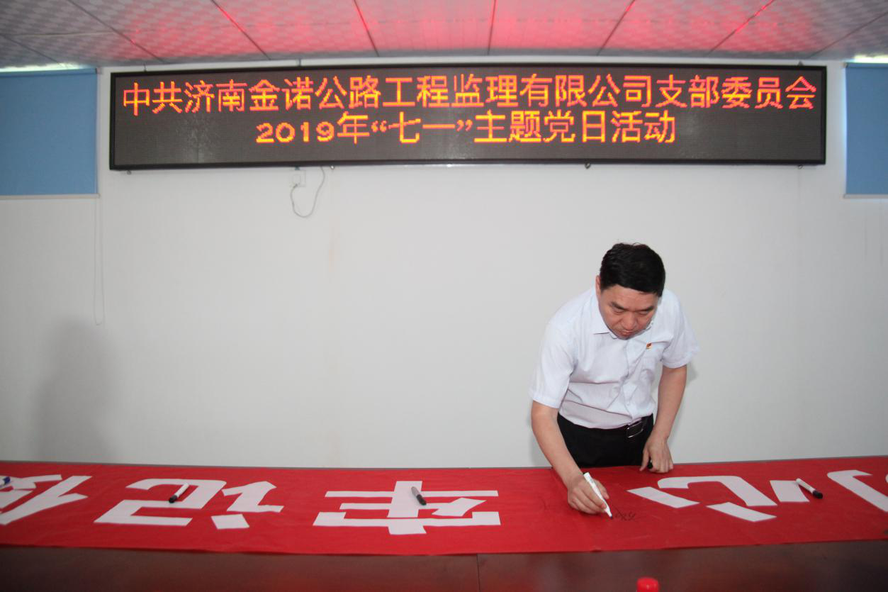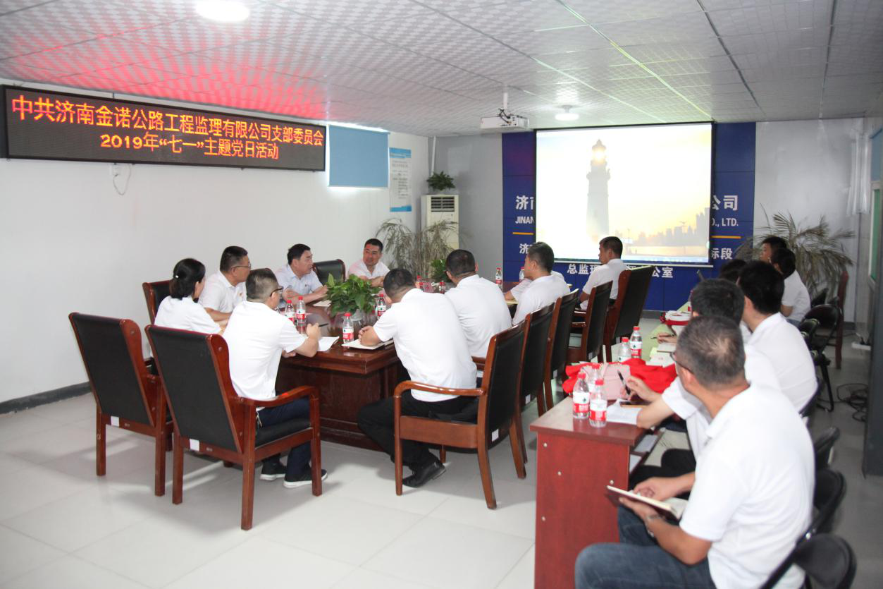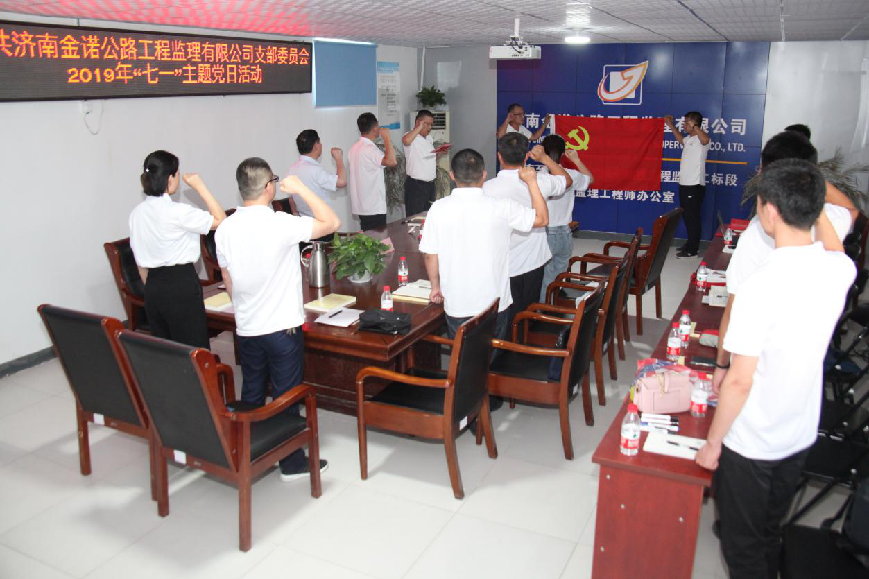 為慶祝中國共產(chǎn)黨成立98周年,喜迎祖國70周年華誕,充分發(fā)揮黨員的先鋒模范作用,深入推進(jìn)“不忘初心 牢記使命”主題教育活動開展,錘煉黨員“忠誠、干凈、擔(dān)當(dāng)”的政治品格,實(shí)現(xiàn)以“黨建促生產(chǎn)”的目標(biāo)。7月1日上午濟(jì)南金諾公路工程監(jiān)理有限公司黨支部在濟(jì)南至樂陵高速公路南延工程總監(jiān)辦舉行了“打贏交通樞紐攻堅(jiān)戰(zhàn) 創(chuàng)建黨員服務(wù)先鋒隊(duì)”活動啟動儀式暨“慶七一”主題黨日活動。公司黨員、積極分子共20余人參加活動。