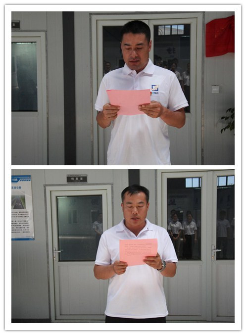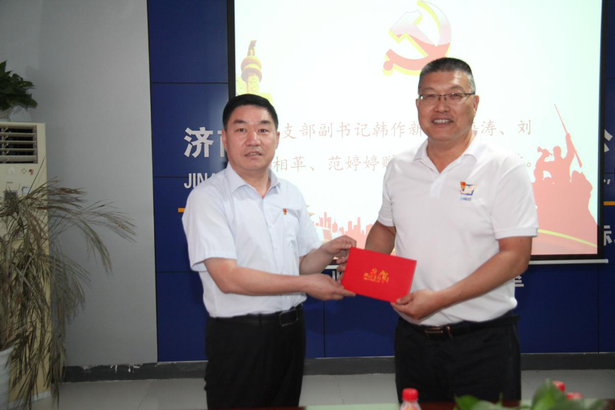 濟(jì)南金諾公路工程監(jiān)理有限公司黨支部副書記、總經(jīng)理韓作新同志為四支“黨員服務(wù)先鋒隊(duì)”授旗。