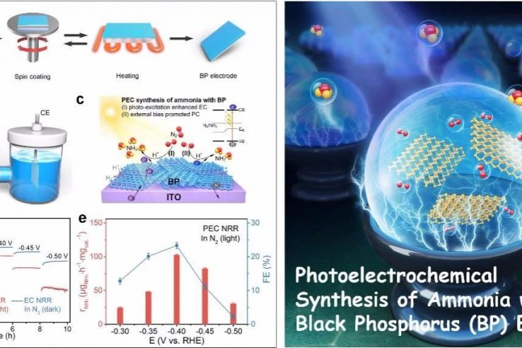 氨是工農業生產中重要的化學原料,也是一種新型的富氫能源載體。目前氨的合成主要通過Haber-Bosch法在高溫高壓下(350-550℃,150-350 atm)進行,耗能較高并伴隨著大量的溫室氣體排放。近日,我院喻學鋒研究員課題組在常溫常壓高效固氮領域取得新進展,開發出具有優異的光電協同固氮合成氨性能的黑磷光電極。相關工作Photoele...