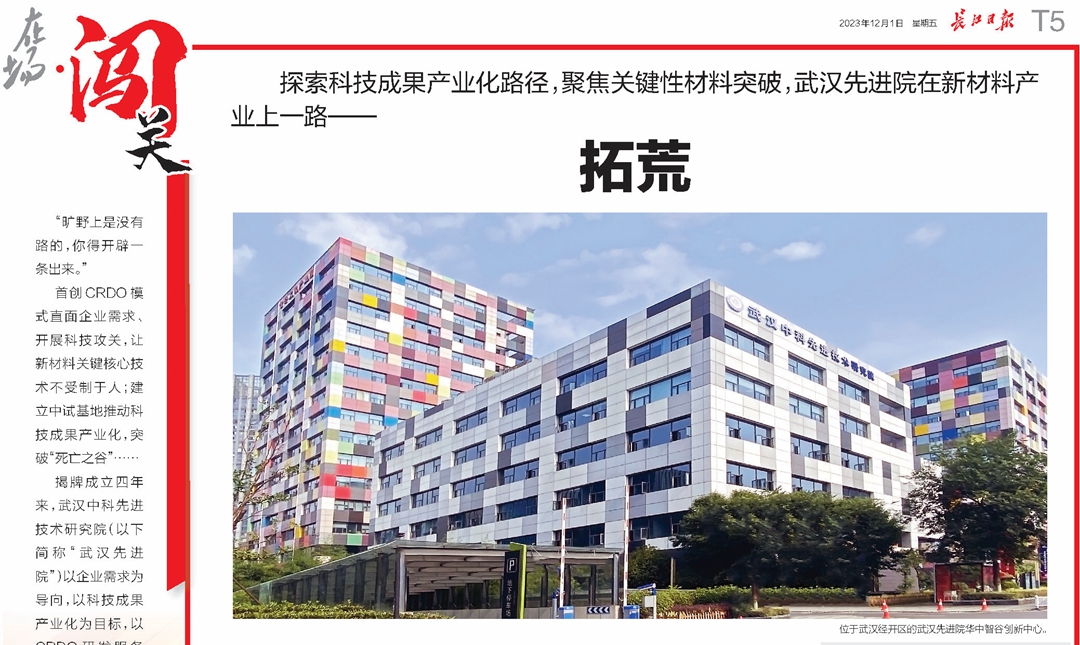 12月1日,長江日報《在場·闖關》特刊聚焦武漢先進院發展歷程,專版報道了武漢先進院在面向新材料產業的研發服務模式創新、關鍵材料技術創新以及扎根公共服務的系列故事。報道全文如下:探索科技成果產業化路徑,聚焦關鍵性材料突破武漢先進院在新材料產業上一路——拓荒“曠野上是沒有路的,你得開辟一條出來。”首創CRDO模...