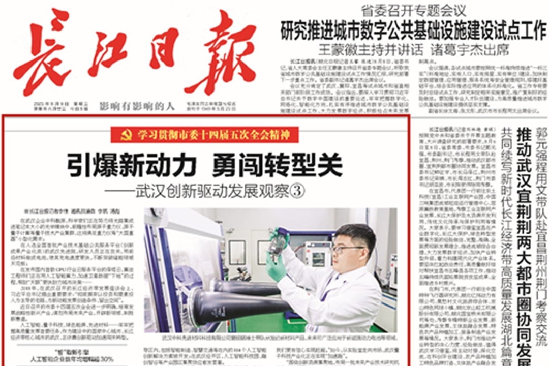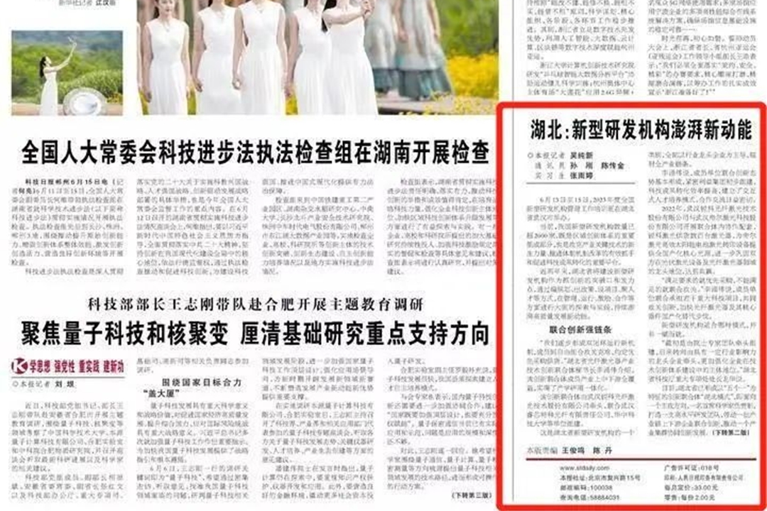 2023年8月9日,長江日報頭版刊登了報道《引爆新動力 勇闖轉型關——武漢創新驅動發展觀察③》,該報道采訪了武漢中科先進材料科技有限公司(簡稱“武漢先進院”)高級工程師竇硯鵬博士,介紹了武漢先進院“超級快充”新材料研發情況。以下為報道全文:在武漢企業中科酷原,科學家們正在努力將光路集成進筆記本大小的光學模塊...