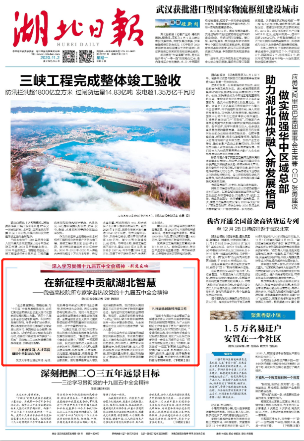 “黨的十九屆五中全會擘畫了全面建設社會主義現代化國家新征程的行動綱領和宏偉藍圖,為廣大社科理論工作者提供了更為廣闊的歷史舞臺和更加大有作為的時代空間?!迨∩缈坡撝飨⑷A中師范大學黨委書記趙凌云教授說,湖北廣大社科工作者將進一步落實習近平總書記“把論文寫在祖國的大地上”的要求,緊緊圍繞“十四五”時期湖北經濟社會發展的重大問題,扎根湖北,深入調研,察實情,出實招,當好省委省政府的智囊,當好黨中央決策部署的宣傳者和闡釋者,為湖北經濟社會發展貢獻更大的“社科智慧″。