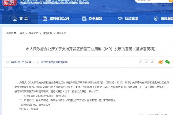 9月28日,武漢市自然資源和規劃局發布“市人民政府辦公廳關于支持開發區新型工業用地(M0)發展的意見(征求意見稿)”。支持東湖新技術開發區、武漢經濟技術開發區、臨空港經濟開發區、長江新區及中法武漢生態示范城型工業用地(M0)發展。 新型工業用地(M0)是指主要用于融合研發、創意、設計、中試、檢測...