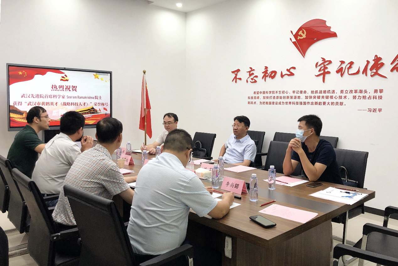 9月7日,武漢開發區工委委員、漢南區委常委、武漢開發區工委(漢南區委)組織部部長何裕生蒞臨武漢中科先進技術研究院(簡稱“武漢先進院”)調研指導工作,并與武漢先進院院長、董事長喻學峰,執行院長、總經理康翼鴻以及書記、副院長李尚鎔座談交流。