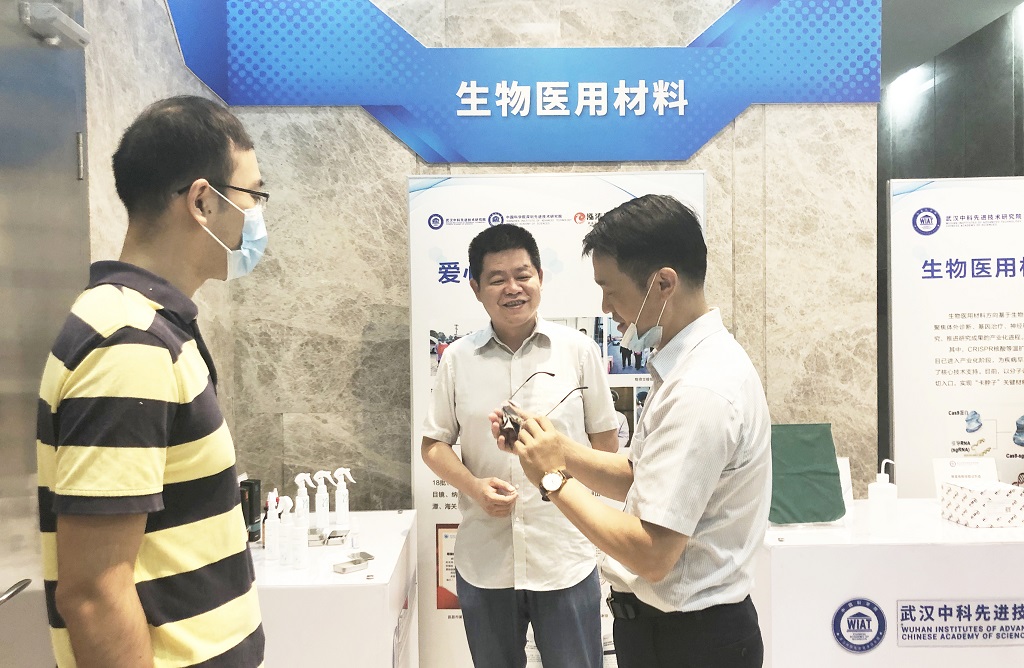 周德文一行在院長喻學鋒陪同下參觀了武漢先進院的展廳,喻學鋒向來訪領導介紹了深圳先進院和武漢先進院基本情況,執行院長康翼鴻對相關展品逐一進行了講解及展示?,F場,周德文試用了疫情期間緊急攻關的納米防霧噴劑的衍生產品——防霧眼鏡布,并詳細了解了其應用場景、作用時長及產業化進展。
