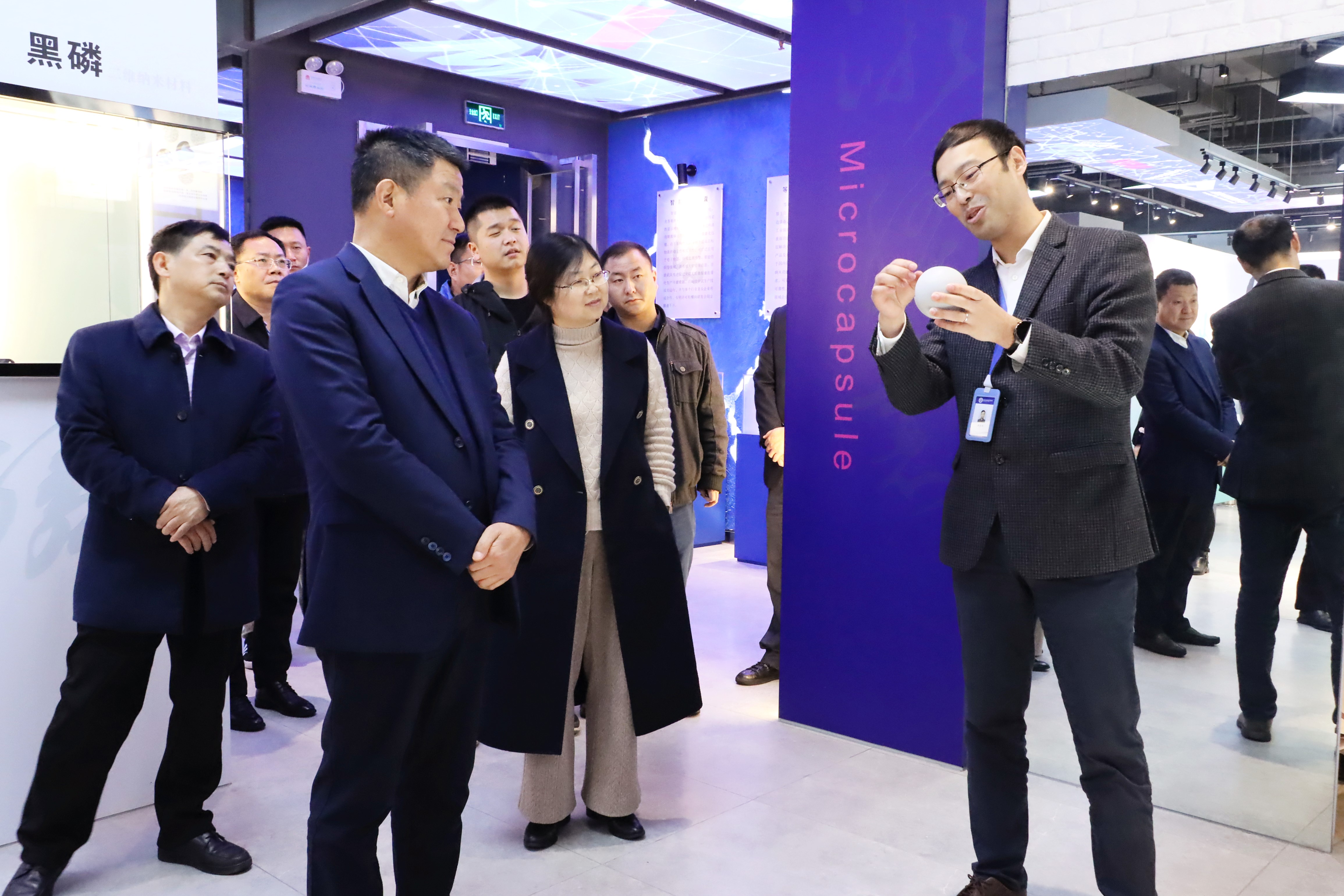 在武漢先進院智造新材展示中心,李國璋一行聽取了武漢院新材料科研項目的介紹,并就感興趣的項目詢問科學原理。